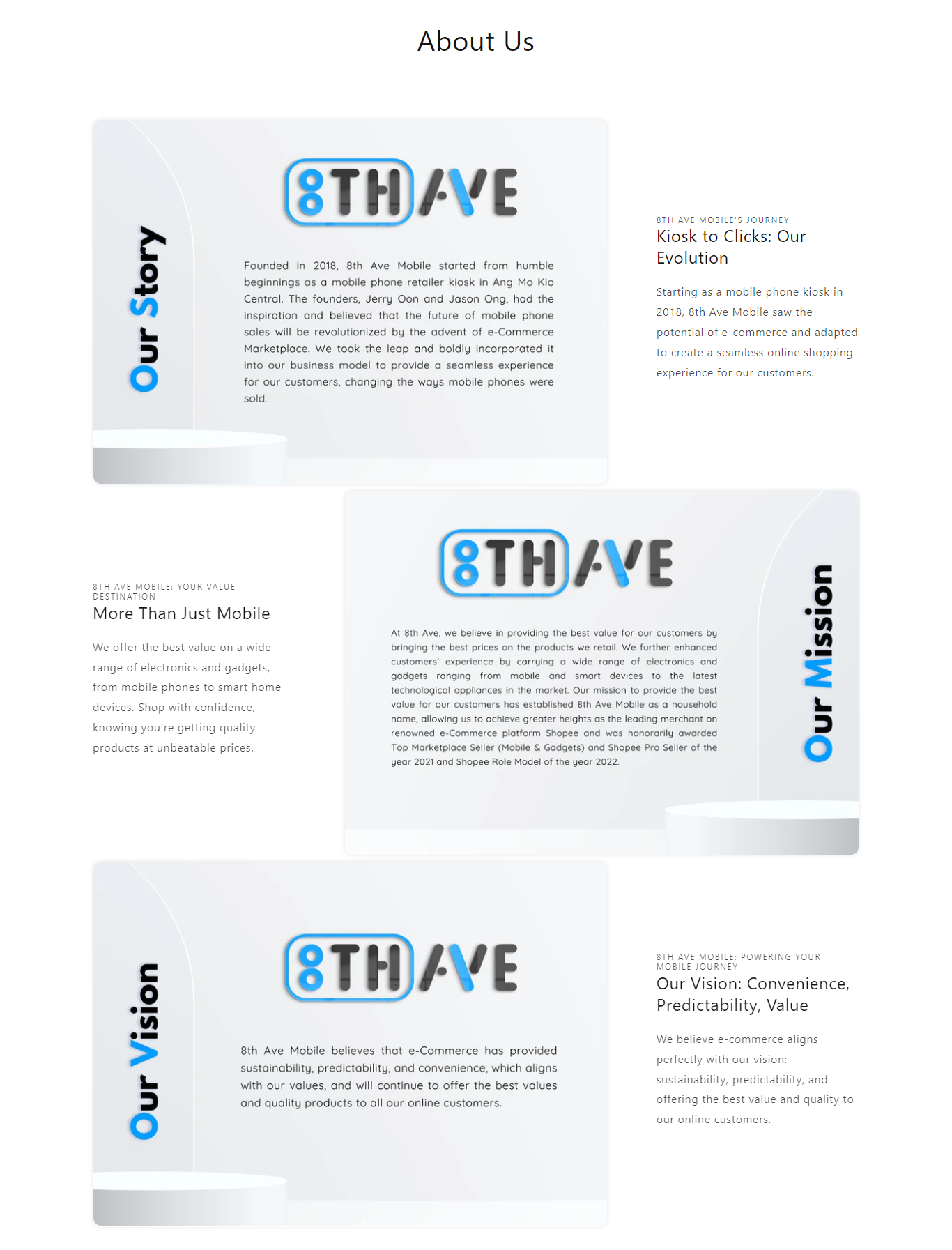 At 8th Ave Mobile, we specialize in providing high-quality mobile phones, smart home solutions, and accessories in Singapore. We offer the latest models from brands like Apple, Samsung, and Oppo, along with repair and trade-in services. Our smart home products include automated lighting, security systems, and smart appliances for a connected lifestyle. We have earned multiple awards, including Top Marketplace Seller (in the Mobile & Gadgets category) starting 2021 until present, and Shopee Pro Seller of the Year in 2021. Our commitment to quality and customer service makes us a trusted name in the industry.