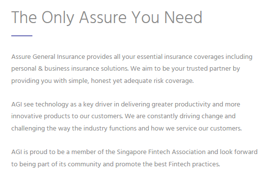 Assure General Insurance offers comprehensive insurance coverage for both personal and business needs. Our goal is to be your trusted partner by providing honest, straightforward, and sufficient risk coverage. At AGI, we see technology as pivotal in enhancing productivity and delivering innovative products to our clients. We are dedicated to driving change and challenging industry norms to serve our clientele better. It is a privilege to be a member of the Singapore Fintech Association; we look forward to contributing to its community and advancing the best Fintech practices.