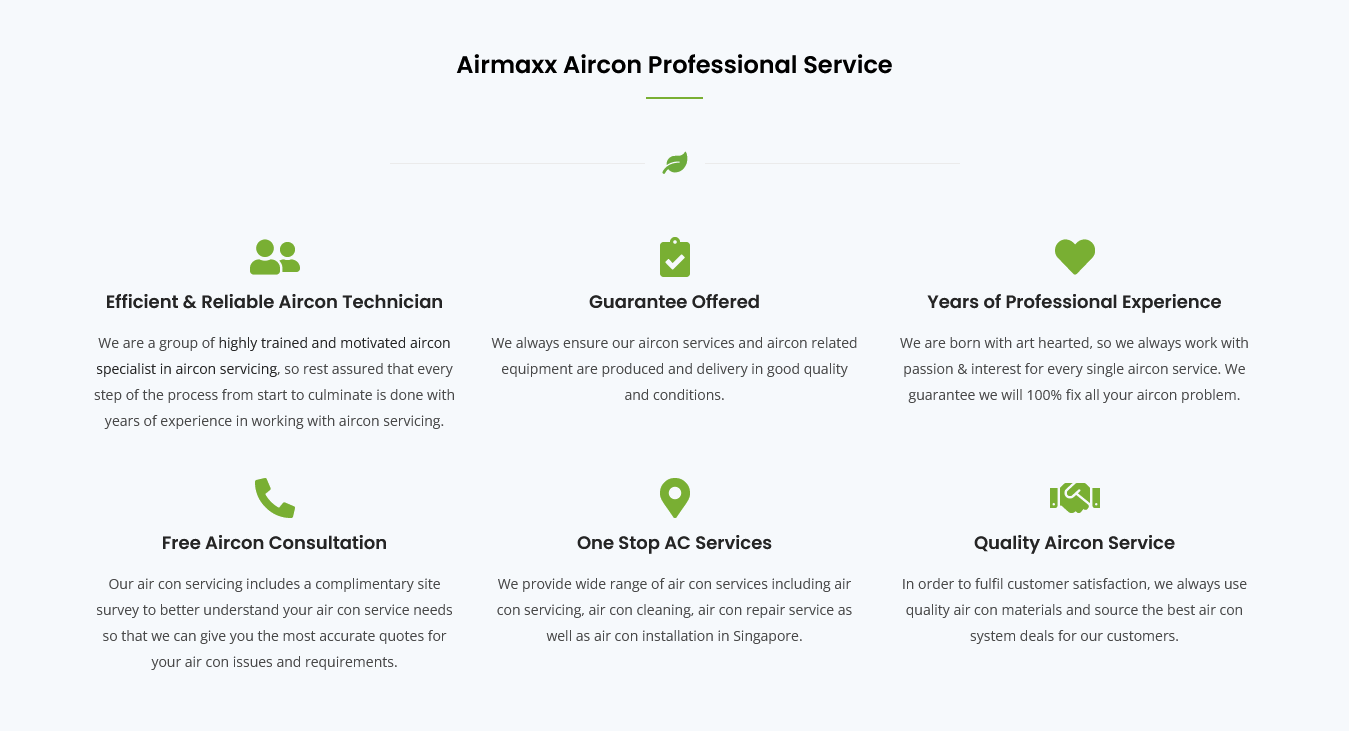 Airmaxx Aircon is a one-stop shop for all things air conditioning in Singapore. We provide a wide range of air conditioner services, and our skilled experts offer exceptional repair and maintenance services at an affordable price to both residential and commercial customers. You will never have to worry about a thing when you leave it in the trusted hands of our reliable and talented staff – technicians and operation personnel who are wholeheartedly dedicated to customer service. We pride themselves on being punctual and getting every job done flawlessly.
