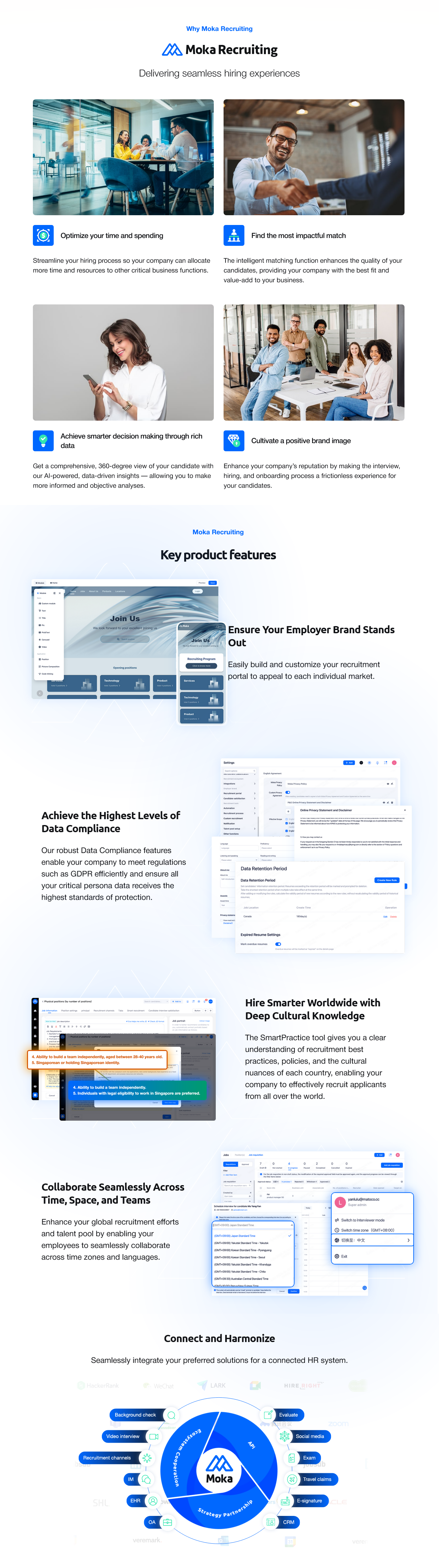 Alphastar Technology is a Singaporean subsidiary of MokaHR, specializing in AI-driven HR SaaS solutions since 2015. As a dedicated HR technology provider, we empower businesses globally—from start-ups to Fortune 500 companies—with Moka Recruiting, our flagship Applicant Tracking System. Our platform streamlines hiring through intelligent resume parsing, interview scheduling, offer management, and deep analytics for data-driven talent decisions. We also support global recruitment with cultural insights, robust data compliance (e.g., GDPR), and seamless integrations across HR tools. We’re committed to enhancing recruitment efficiency and employer branding through intelligent automation and innovation.