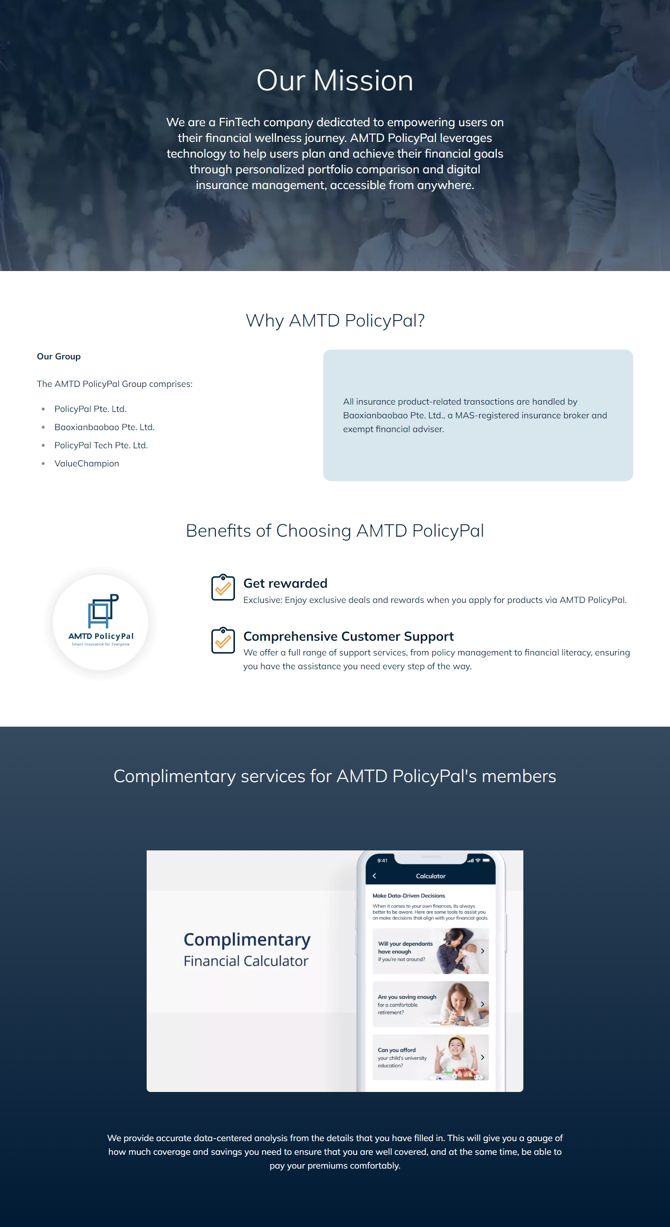 AMTD PolicyPal is an insurtech leader offering a one-stop, tech-driven platform for insurance management. Founded in 2016 and acquired by AMTD Digital, the company combines Optical Character Recognition (OCR) and AI to simplify policy registration, coverage gap analysis, and claims processing—eliminating tedious manual tasks. Our unique value lies in our unbiased, transparent insights across multiple insurers, helping users make informed decisions. Recognized as the first graduate of the MAS FinTech Sandbox and with CEO Val Yap named among “Top 10 FinTech Leaders,” PolicyPal has aggregated over S$ 3 billion in insured sums and facilitated coverage for tens of thousands of users, underscoring our mission to enhance financial inclusion through innovation.