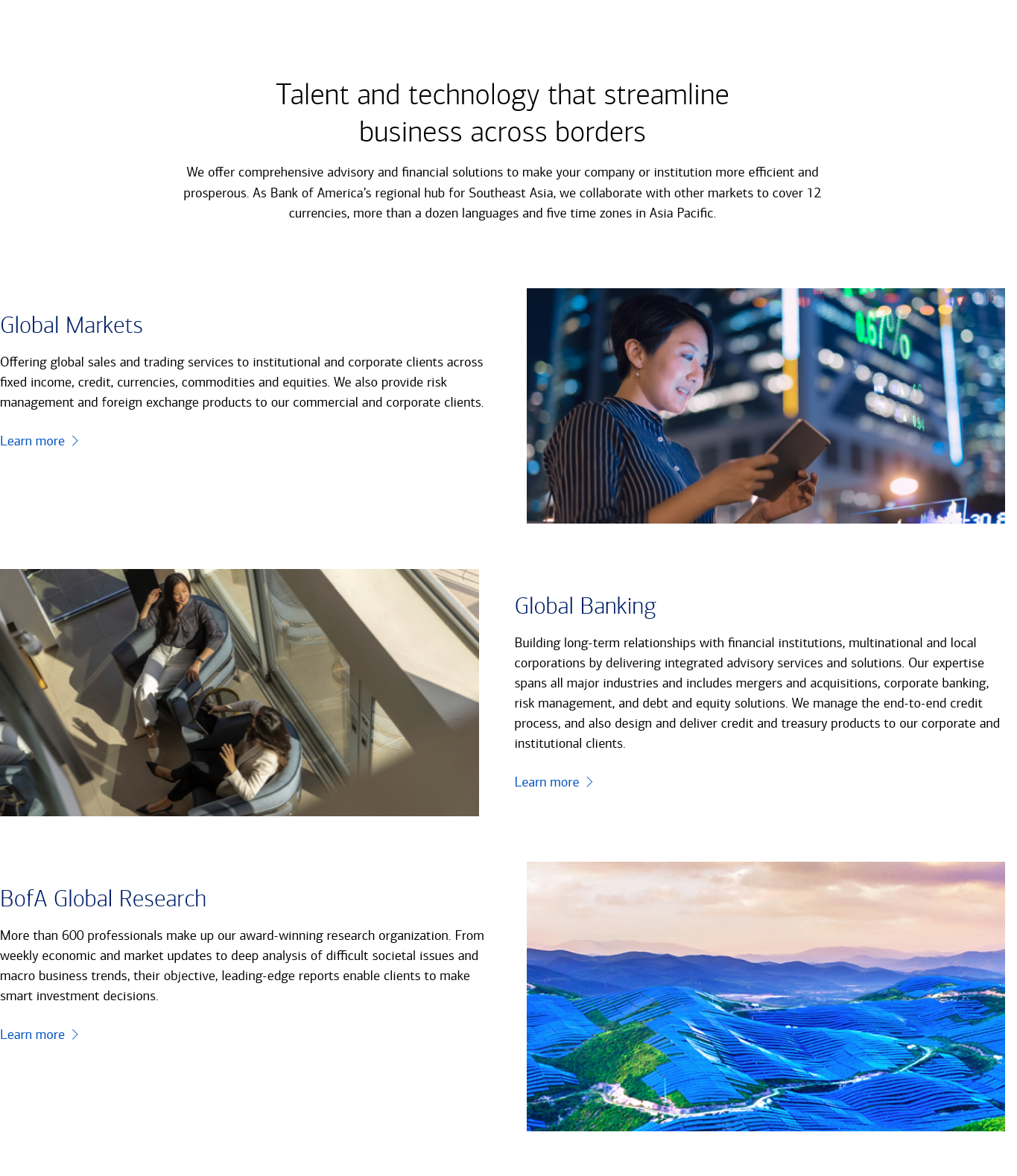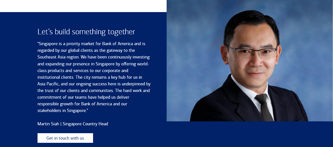Bank of America is one of the world’s largest financial institutions. Our mission is to help make financial lives better through the power of every connection, using responsible growth to support clients, communities, and shareholders. Our vision is to be the world’s finest financial services company, reflecting our ambition for global leadership and excellence. Through eight lines of business, we deliver simple, safe, and transparent solutions ranging from consumer banking, commercial lending, and wealth management to investment banking and corporate services. By combining technological innovation, community impact, and personalized advice, we empower individuals and organizations worldwide to achieve their financial goals.