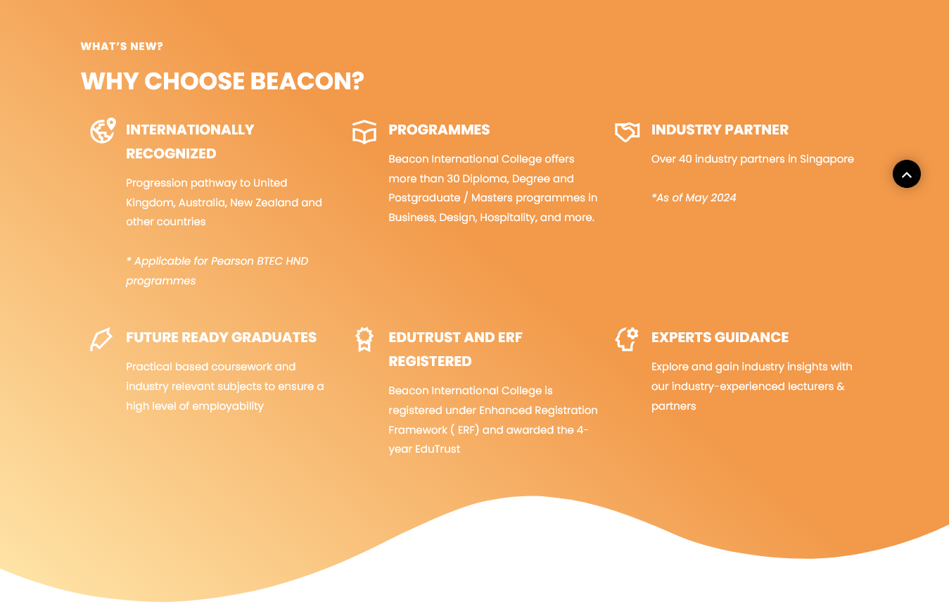 Beacon International College is a private education institution offering more than 30 diploma, degree, and postgraduate programmes across business, design, hospitality, and more. Our vision is to nurture future-ready graduates equipped with practical skills and global perspectives, while our mission emphasizes delivering a nurturing, holistic educational experience underpinned by deep values and quality learning. Through strong partnerships with UK universities and over 40 industry collaborators, we combine academic rigor, real-world mentorship, and international pathways. By integrating modern teaching, small-class dynamics, and career-focused outcomes, we empower students to confidently transition from classroom to workplace and thrive in a global landscape.