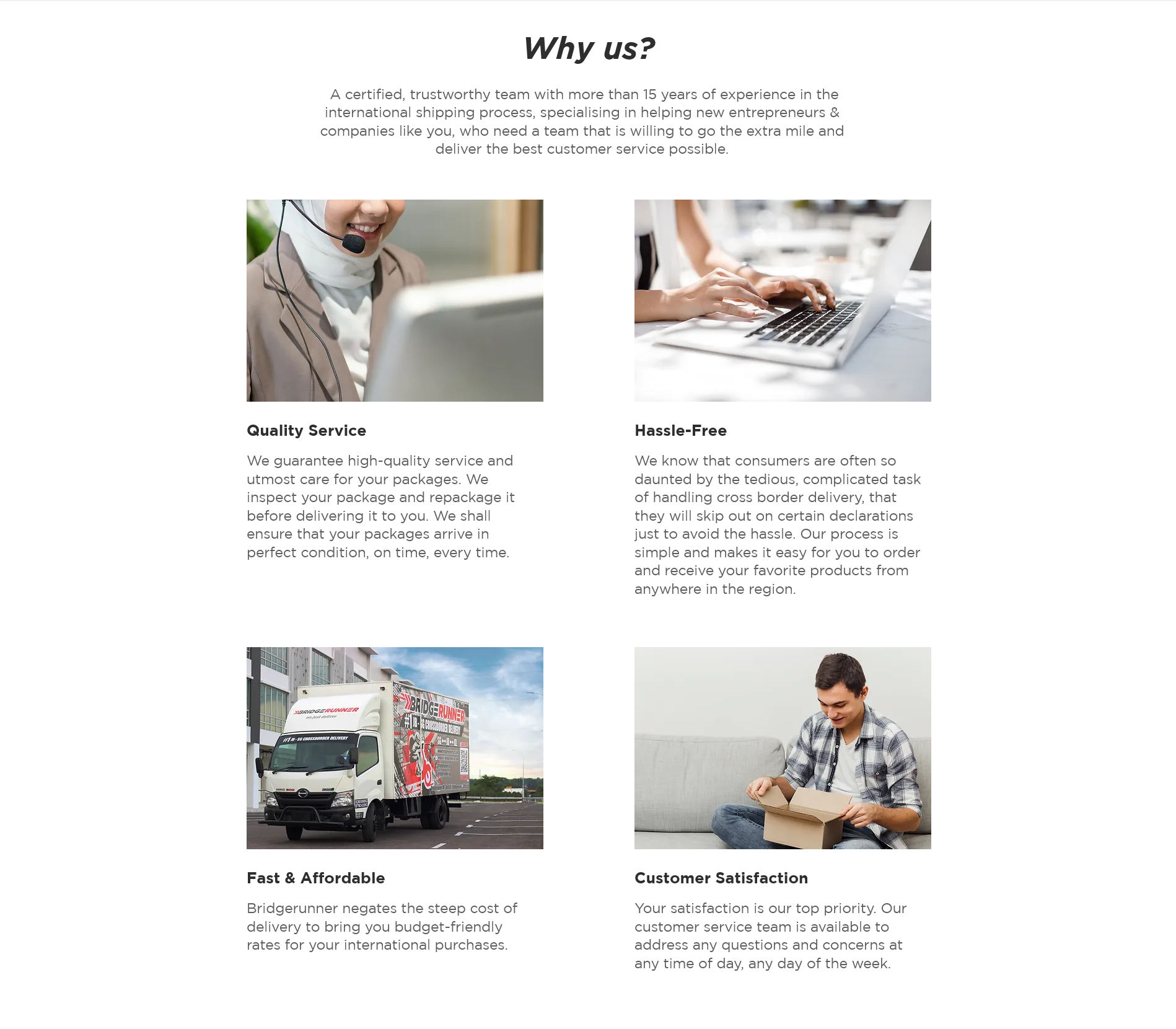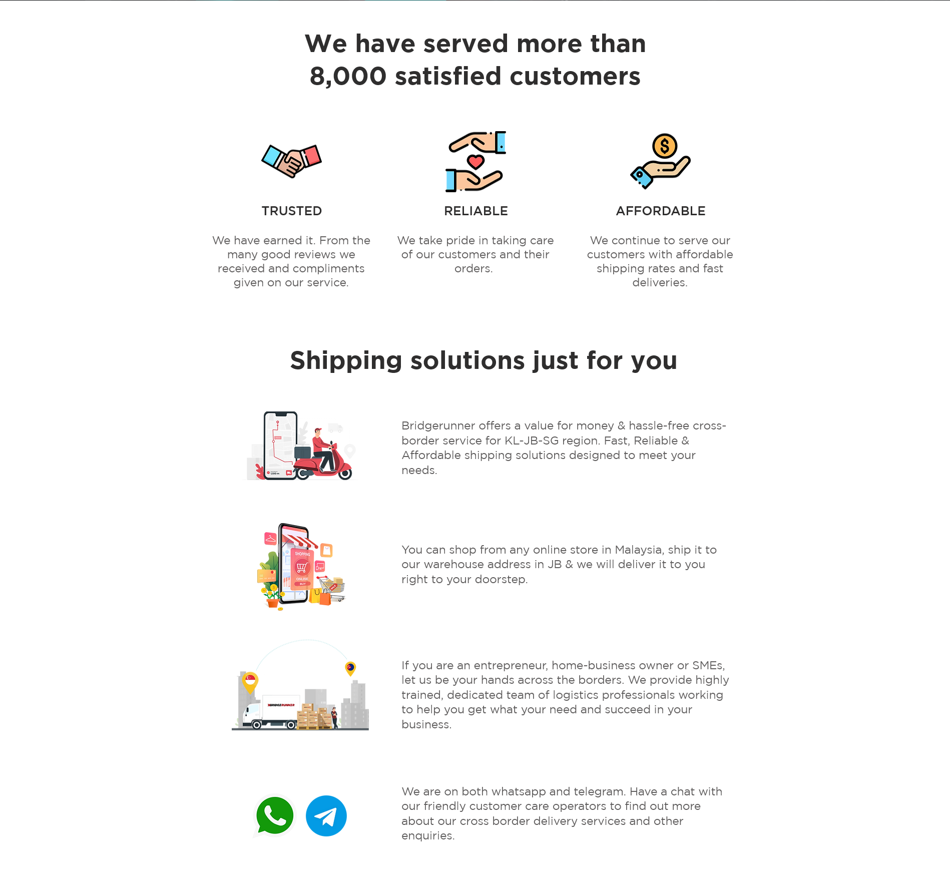 Bridgerunner is a Singapore-based freight forwarding and cross-border courier company founded in 2015. We began with humble beginnings, initially only delivering small items like band posters and groceries via motorbike. Today, we offer fast, affordable, and reliable logistics solutions tailored for e-commerce and SME clients navigating the Malaysia–Singapore corridor. We specialise in next-day palletised freight, express parcel delivery, customs clearance, warehousing, last-mile distribution, and real-time shipment tracking. With daily scheduled trips, strong regional fulfilment infrastructure, and a customer-first mind-set, we bridge operational gaps so businesses can expand confidently across borders. Our mission is to make logistics seamless and transparent – empowering brands and entrepreneurs to scale effortlessly.