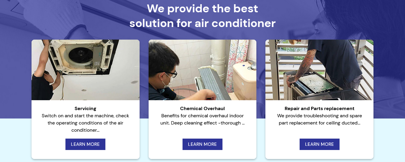 CC Air-Con is a team of certified professionals who can provide all your business cooling needs: from small offices to complex large-scale projects. Our experts are on time, professional, and trustworthy teams made up of professionals with years of experience. Since our foundation in 2016, our company has helped countless consumers with home cleaning, system repair and installation problems. Our standard servicing includes: Inspecting, cleaning, and replacing aircon parts; testing and deodorising of filters; checking and lubricating of motor bearings; and much more.