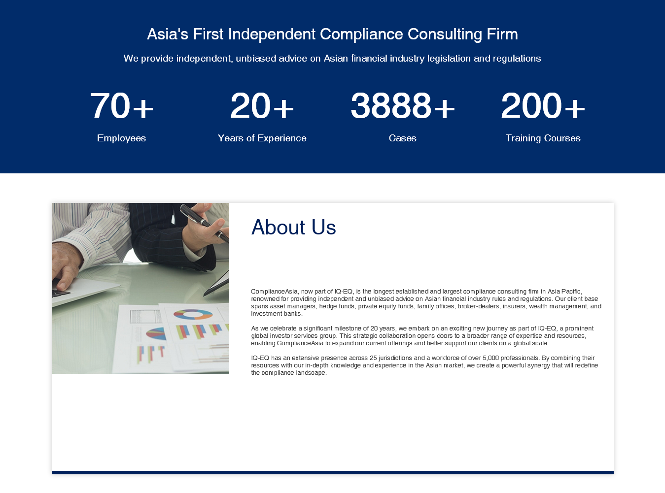 At ComplianceAsia, our mission is to help financial institutions meet evolving regulatory expectations with confidence, and to make compliance a strategic advantage. We clarify obligations, design practical controls, and provide ongoing support across licensing, advisory, monitoring, training, and ESG so your teams can operate safely at pace across Asia-Pacific. As the region’s longest-established compliance consulting firm (founded 2003), we combine deep local expertise with multi-jurisdiction insight to deliver solutions that work in the real world, not just on paper. Our goal is simple: reduce regulatory risk while enabling sustainable growth.