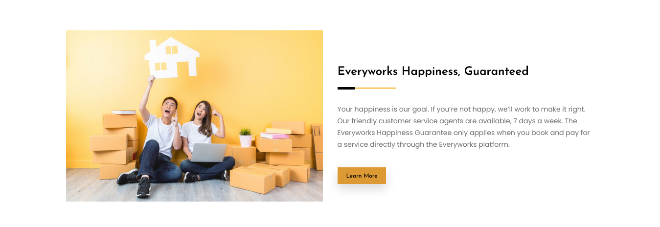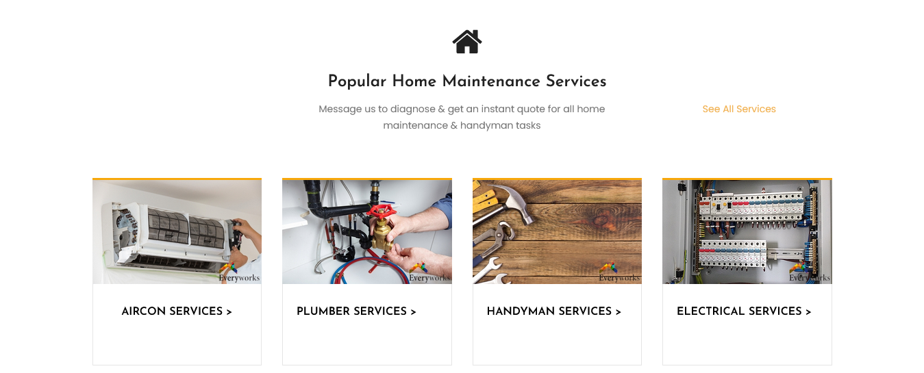 With Everyworks, you can expect 5-star customer service, end-to-end service of supply and installation, fast response & anticipation of your needs, transparent pricing and detailed quotations, a holistic solution personalized to you, and qualified and licensed professionals. Everyworks caters to every home maintenance and repair needs such as aircon services, plumbing, electrician, and handyman. With Everyworks, clients can enjoy booking multiple services on a single platform and a seamless, hassle-free process of hiring a home maintenance service provider. Everyworks is also a trusted one-stop shop for home products.